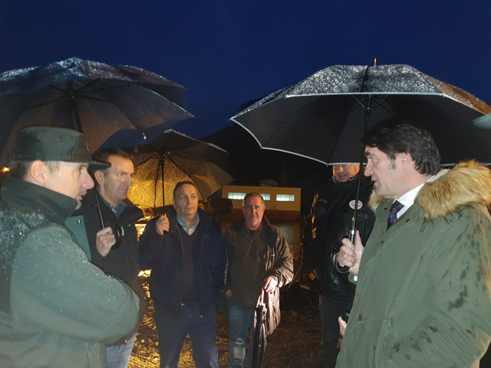 Allí, el consejero ha visitado el casco urbano y el lugar de acceso a las instalaciones de mina a cielo de la empresa Hullera Vasco-Leonesa, desde donde procedía el agua torrencial por las intensas lluvias a través del túnel del lavadero de carbón, que hace de desagüe y llegó hasta las calles del pueblo, anegadas por una especie de marea de agua negra, con el consiguiente perjuicio también para casas particulares o establecimientos comerciales, además del casco urbano.