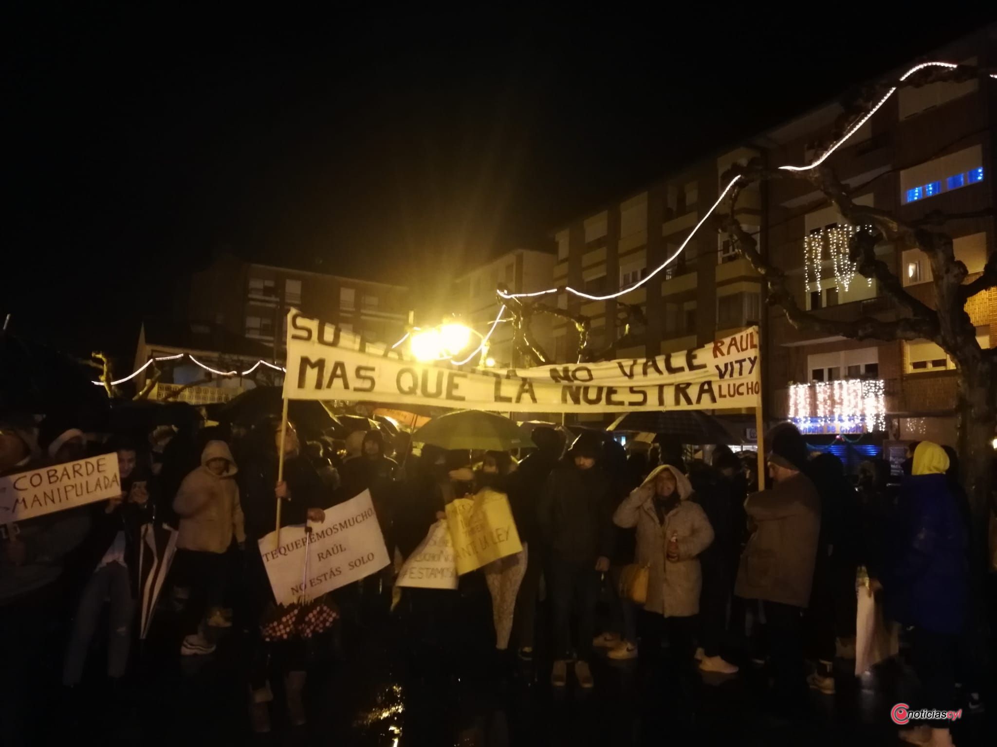 200 personas claman justicia bajo la lluvia en Bembibre para los exjugadores de La Arandina