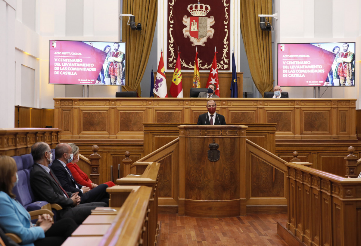 El presidente de las Cortes de Castilla y León, Luis Fuentes, ha participado esta mañana en el acto institucional con motivo del V Centenario del Levantamiento de las Comunidades de Castilla, que se ha celebrado en el Salón de Plenos de las Cortes de Castilla-La Mancha.