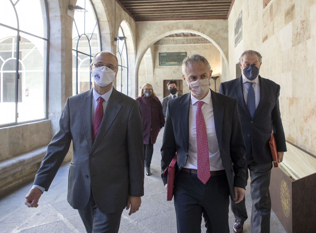 El acto contó también con la presencia de Jacobo Sanz Hermida, director de Ediciones Universidad de Salamanca (EUSAL), Enrique Cabero, presidente del CES de Castilla y León; Salvador Ignacio Rus Rufino, comisario de la exposición 'Comuneros: 500 años'; y Purificación Galindo, vicerrectora de Ciencias de la Salud, Calidad y Política Académica, además de las autoras , que al no poder desplazarse a Salamanca por la pandemia, intervinieron a través de un mensaje grabado.