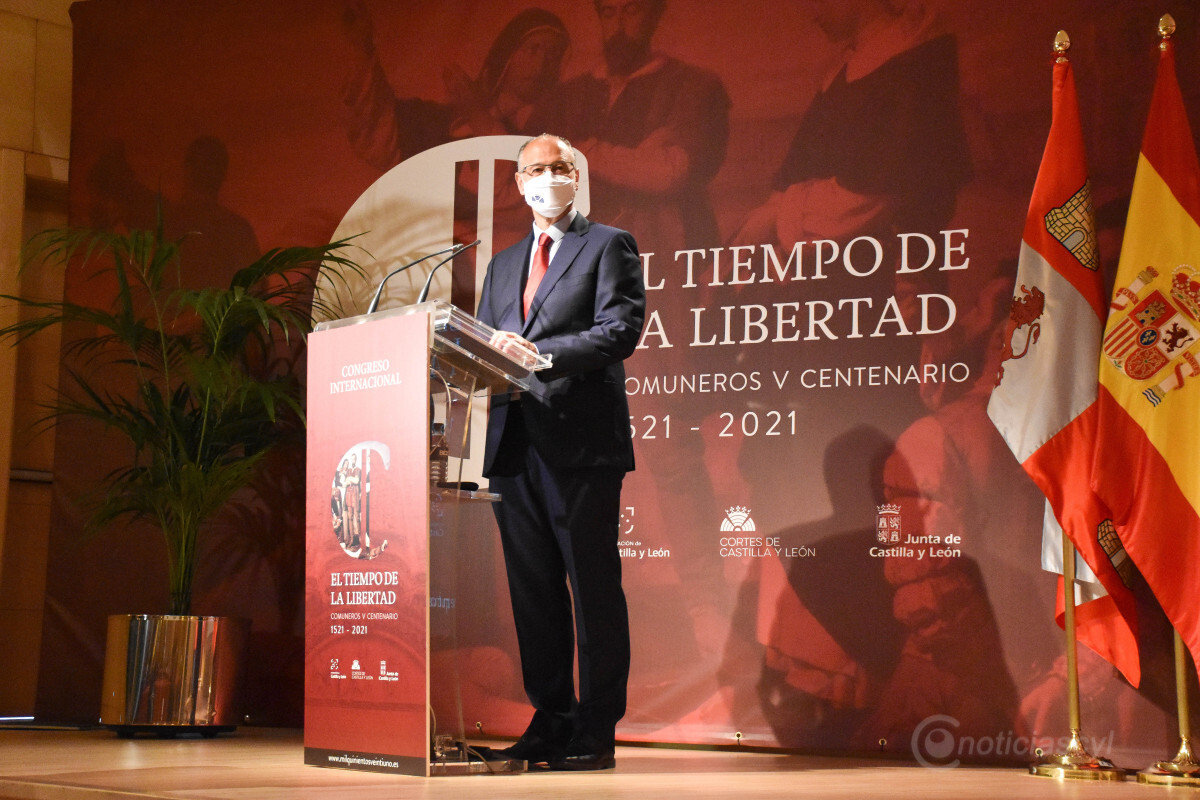 Era uno de los actos centrales de la celebración del V centenario del movimiento comunero y al final, tras la mejoría por la situación epidemiológica, se va a poder celebrar el Congreso Internacional ‘El Tiempo de la Libertad. Comuneros V Centenario’, que ha contado en la inauguración con la presencia del presidente de las Cortes y de la Fundación de Castilla y León, Luis Fuentes, y también con Alfonso Fernández Mañueco, presidente de la Junta.
