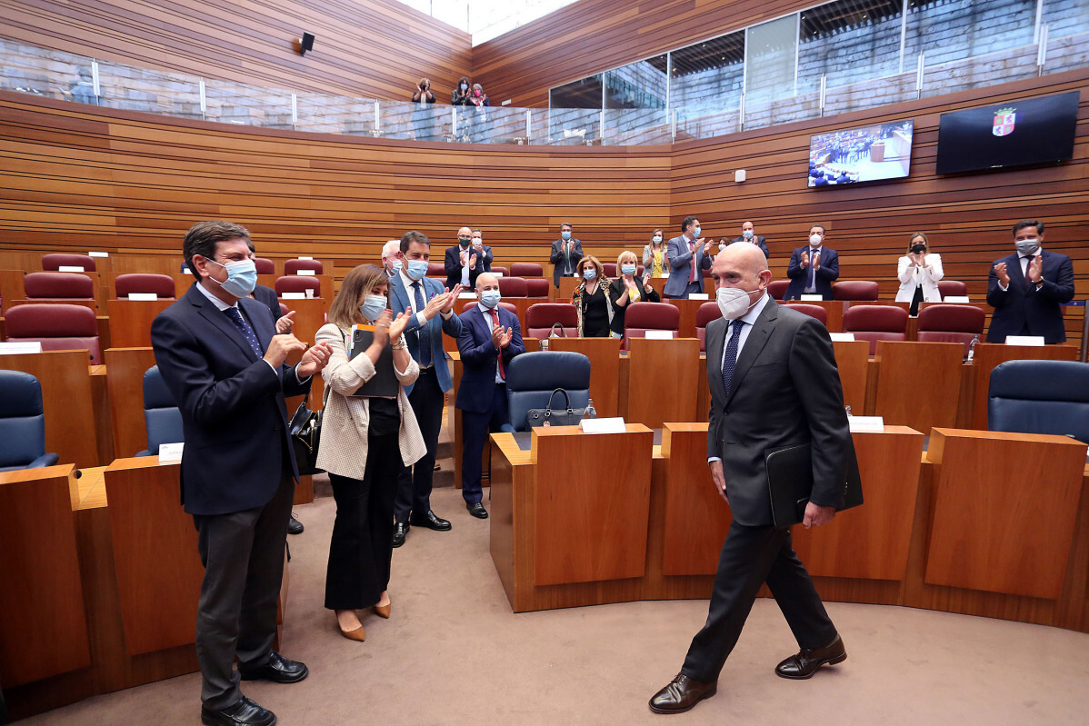 A su entrada al hemiciclo, todos los procuradores hoy presentes en el pleno se levantaron de su asiento y recibieron al consejero con un sonoro y prolongado aplauso, a lo que Carnero respondió acercándose a cada grupo parlamentario para, visiblemente emocionado, agradecer con la mano en el pecho el recibimiento de sus compañeros en el Parlamento autonómico.