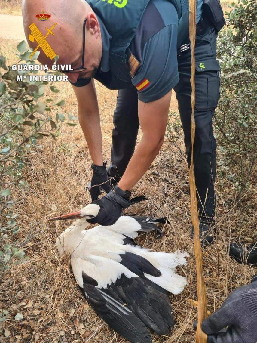 La Guardia Civil, el pasado 22 de junio del presente, auxilió a una cigüeña que no podía valerse por sí misma.