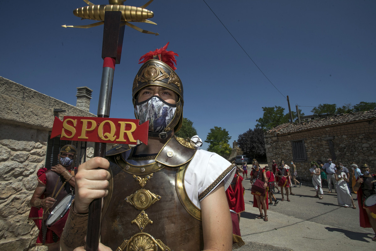 La asociación cultural ‘Dios Baco’ de Baños de Valdearados retomó este año esta tradicional celebración, declarada Fiesta de Interés Turístico Regional, cumpliendo las restricciones de aforo y el control de medidas sanitarias y de seguridad. Las actividades comenzaron ayer, sábado 21 de agosto, con talleres de mosaicos, peluquería, cuero y telas; así como conferencias sobre ‘Lapis Speculariis’ por parte del profesor de Historia Emilio Guadalajara, y sobre comida romana a cargo de la arqueóloga Juana María Huelamo.