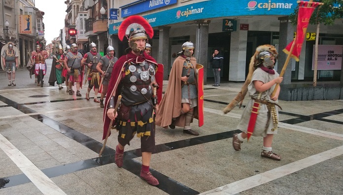 Tras un breve desfile de legionarios por los alrededores de la Harinera, tuvo lugar el momento más esperado por los niños – y no tan niños – que asistieron al acto: la celebración de un taller de iniciación legionario en el que se instruyó a los participantes acerca de las distintas formaciones militares romanas. Por último y tras el cese de la persistente lluvia que acompañó durante toda la tarde, fue posible organizar un segundo desfile hasta la Plaza Mayor de la ciudad.