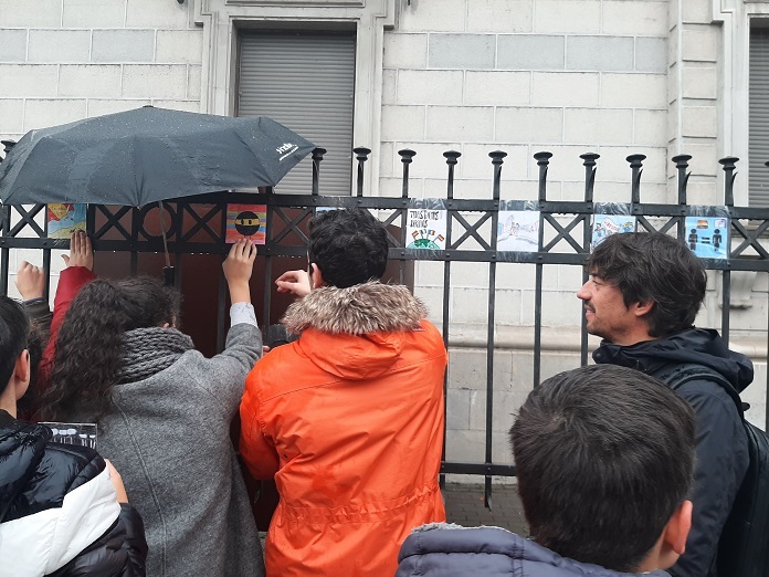 Este miércoles los alumnos del Colegio Marista San José han procedido a colocar las obras en las verjas del CLA, acompañados por el diputado de Cultura, Arte y Patrimonio, Pablo López Presa; el director del departamento de Arte y Exposiciones, Luis García; el artista y promotor del proyecto Carlos Álvarez Cuenllas, así como diferentes representantes del Proyecto de Protección Internacional del Hospital de San Juan de Dios y algún representante de los refugiados/as.