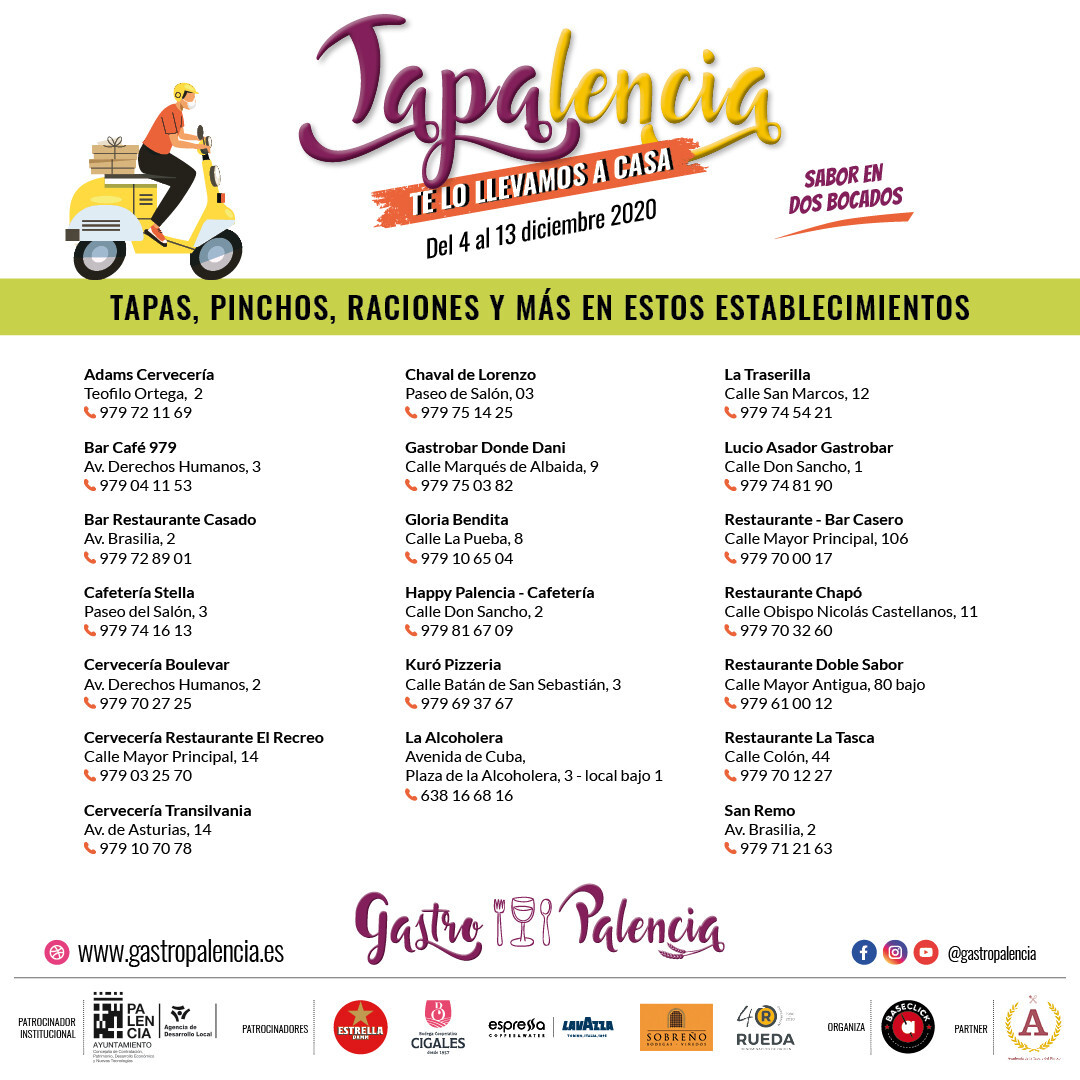 Desde la página web www.tapalencia.com se puede consultar el listado de los 20 bares - restaurantes, el menú que ofrece cada establecimiento en el Pack Tapalencia y llamar para hacer los pedidos.