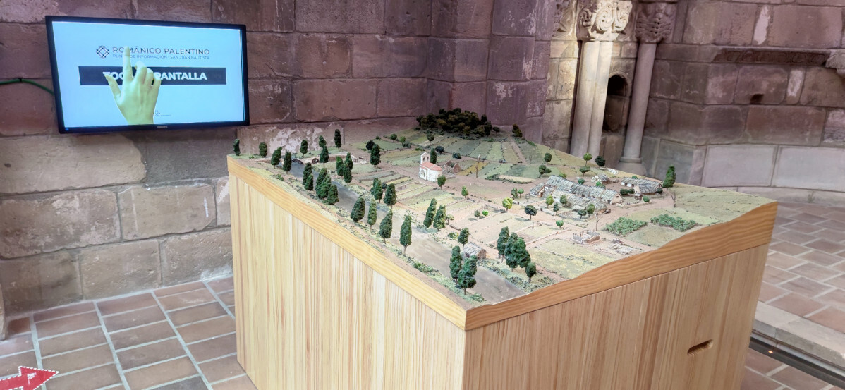 En el ámbito exterior se ha procedido a la limpieza y reparación de todos los paramentos además de la implementación de un tratamiento contra las pintadas. En lo que respecta al interior, además de los trabajos de limpieza y reparación de los muros y elementos arquitectónicos, también se ha sustituido la maqueta y se ha renovado toda la carpintería, pintura, luminarias y elementos audiovisuales e interactivos, “cuyos contenidos han sido desarrollados por otras dos empresas palentinas como son ICON Multimedia, responsable del software, y AGC Multimedia, encargada de los textos e imágenes”, incidió Lombraña.