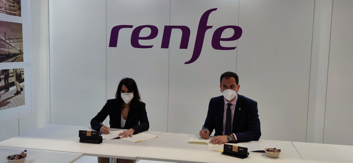 El documento ha sido suscrito en la mañana de hoy por el regidor palentino, Mario Simón, y la directora genral de la operadora ferroviaria, Sonia Araujo, en el marco de la Feria Internacional de Turismo de Madrid (FITUR) 2021 y en presencia de la concejal de Cultura, Turismo y Fiestas de la capital castellana, Laura Lombraña.