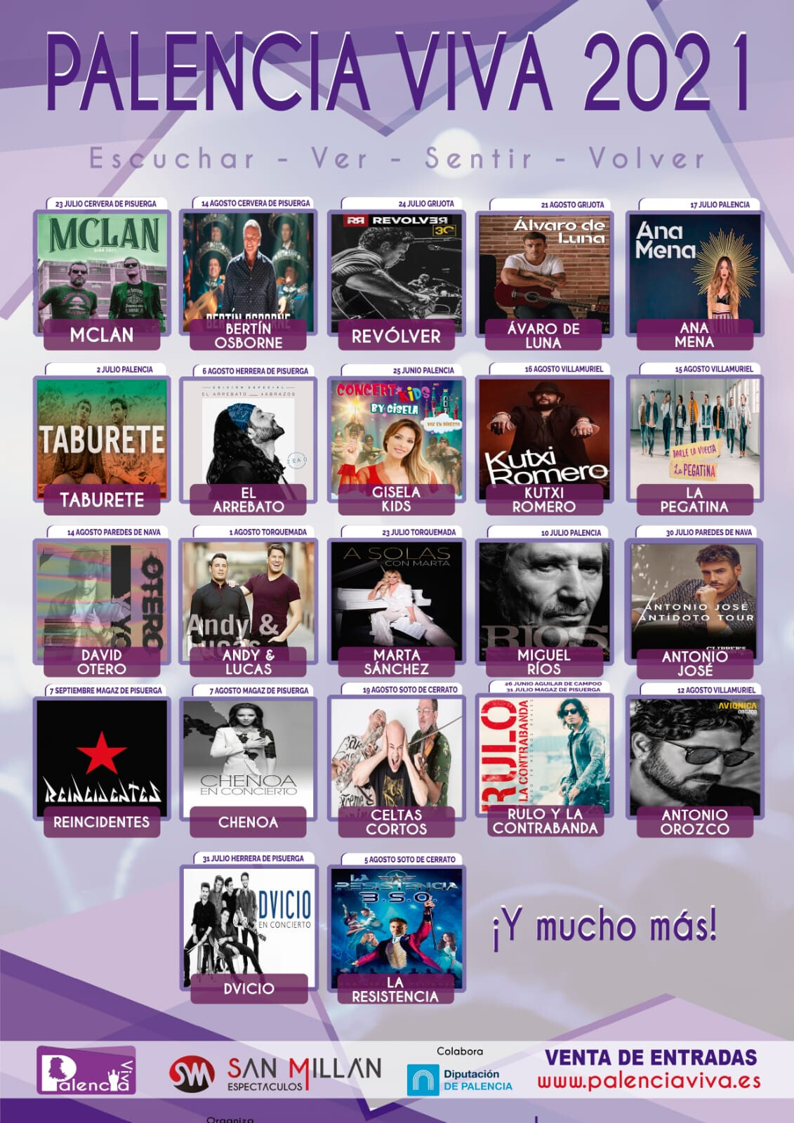 La colaboración del Ayuntamiento de Palencia y Espectáculos 'San Millán' permitirá que los palentinos disfruten de cuatro conciertos de primer nivel en el marco del festival 'Palencia Viva' 2021,"una novedosa propuesta que colocará a la ciudad en primerísima línea del panorama cultural", señaló Lombraña, quien aprovechó para reconocer, "el importante trabajo y esfuerzo que están realizando los promotores palentinos para sacar adelante proyectos interesantes y adaptados a las normas sanitarias". La música también recorrerá diferentes puntos de la provincia de Palencia durante el verano.