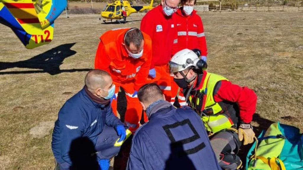 Dos helicópteros de rescate evacuaron a los escaladores hasta la localidad de Triollo, donde les aguardaba el personal sanitario.