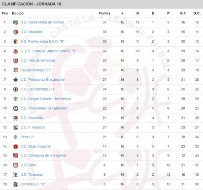 La Unión Deportiva Santa Marta continúa líder tras acumular otra victoria y mantiene a Villaralbo y Ponferradina B a dos puntos de ventaja. En la zona media siguen el Ciudad Rodrigo y Peñaranda, el primero a costa del segundo, rompiendo su racha negativa de resultados. También ronda esa zona el Hergar pese a cosechar su tercera derrota consecutiva.