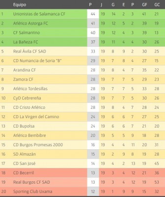 La Bañeza sigue en cuarta posición, última plaza que da acceso a la promoción de ascenso, a siete puntos de Unionistas, mientras que el quinto queda ya a once puntos. Es decir, que los blanquinegros podrían fallar cuatro partidos y seguirían en puestos de ascenso.