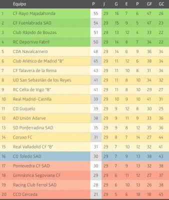 Con 39 puntos, sigue a dos victorias para certificar la permanencia, sacando nueve puntos a los puestos de descenso. Además, los tropiezos de sus antecesores le hacen seguir estando en la pelea por las plazas de la Copa del Rey para la próxima temporada, a cuatro puntos.