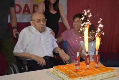 Jesús, que puede presumir de una salud excelente a pesar de su edad, se mostraba muy afable y emocionado por tener durante estos días cerca a buena parte de la familia así como agradecía la felicitación por parte del Ayuntamiento. El centenario recibía un ramo de flores y una placa conmemorativa que le entregaba la concejala de Bienestar Social y la alcaldesa de Campillo y otro tanto de lo que le hacia entrega Rosa Martin, directora de la Resisdencia. “Es para nosotros un honor y un placer poder compartir esta fecha con Jesus y su familia”, señalaba Yolanda Alonso Valderrama a lo que Rosa Hernández recalcaba el valor de los mayores diciendo que “Guijuelo es hoy lo que es gracias al trabajo duro y el esfuerzo de personas como Emiliana”, añadía.