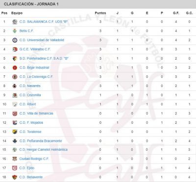 El Salamanca UDS B es el primer líder tras golear a su rival. También ganó el Béjar Industrial, que se coloca sexto en la clasificación. En mitad de la tabla está el Ríbert, que empató en su estreno en la categoría, mientras que en la parte baja se colocan Ciudad Rodrigo, Peñaranda y Hérgar tras cosechar sendas derrotas.