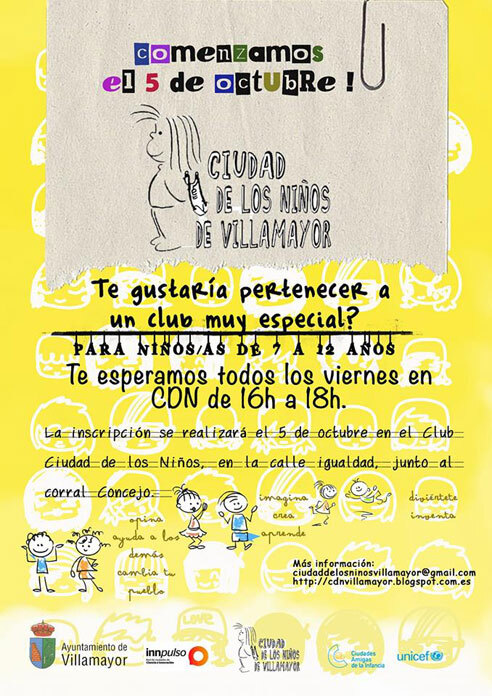 El próximo 5 de octubre, viernes , el Club de Ciudad de los Niños/as de Villamayor inicia de nuevo sus actividades en este nuevo curso. Pero no en un curso más, es un curso con nuevos talleres, con más ideas y con una gran ilusión y esperanza puesta en el trabajo realizado en años anteriores y que este año esperamos tenga la recogida de sus frutos.