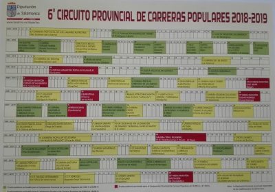 El diputado provincial de Deportes, Jesús María Ortiz, y el delegado de la Federación de Atletismo en Salamanca, Casimiro Blanco, han presentado el sexto Circuito Provincial de Carreras Populares ‘Diputación de Salamanca’, que comenzará el próximo 4 de noviembre con la Ruta de los Lagares Rupestres en San Esteban de la Sierray se prolongará hasta el 27 de octubre de 2019 con las Dos Leguas del Balneario de Ledesma con un total de setenta carreras, ocho de ellas de máxima dificultad.