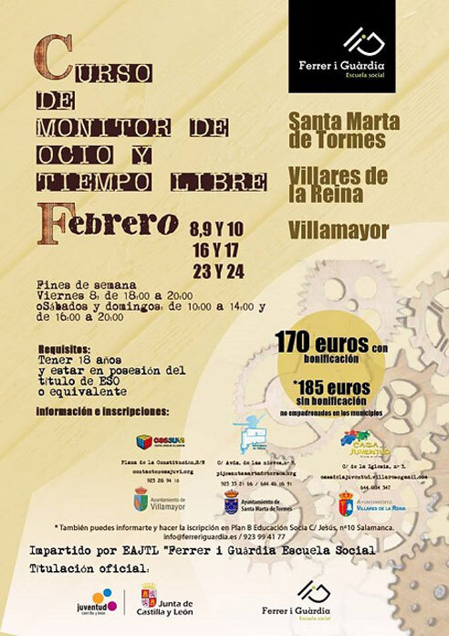 Si estás empadronado en Villamayor aprovecha y sácate el Curso Oficial de Monitor de Tiempo Libre con un descuento. El Ayuntamiento de Villamayor junto con la Ferrer i Guàrdia Escuela Social te ofrecen la ocasión en tres fines de semana.