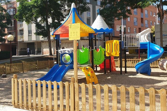 En concreto, se ha modificado la zona infantil, diferenciada en dos espacios. En una de ellas se ha instalado un gran combi con elementos interactivos y adaptados, y en la otra, más dinámica, se han colocado juegos de cesta, carrusel y areneros. En cuanto al pavimento, se ha colocado grava, y las dos zonas se han vallado para seguridad de los niños. Asimismo, se ha instalado una fuente bebedero junto a las zonas infantiles.
