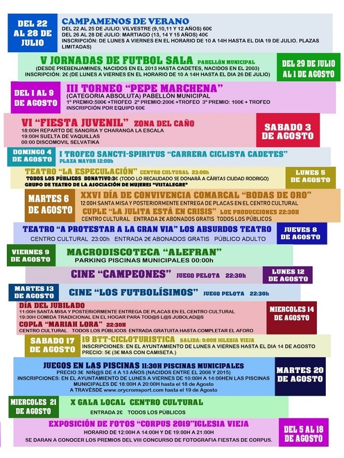 El Ayuntamiento de Sancti Spíritus ha preparado una nutrido programa de actividades para el disfrute de los vecinos, especialmente de los más pequeños. Campamentos de verano, competiciones deportivas, fiestas, teatro y cine protagonizarán un periodo estival que también está pensado para los mayores con actividades especificas.