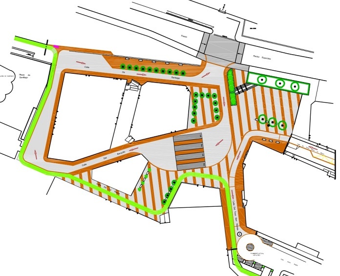 La urbanización de la plaza del Mercado Viejo implica la modificación del trazado del carril bici para que no interfiera con la llegada y salida de autobuses. Así, se lleva por la calle de la Pesca y por la Plaza de Santiago hacia el Puente Romano, suprimiendo el tramo de calle Teso de San Nicolás. Al mismo tiempo, se restringirá el tráfico de las calles Santa María la Blanca y Santa Brígida, por lo que se realizará una rotonda.