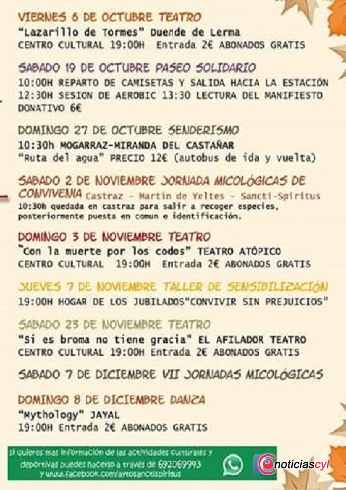 La Concejalía de Cultura y Deportes de Sancti Spítitus ha publicado la programación cultural de otoño en la localidad. Una serie de actividades organizadas por el Ayuntamiento en colaboración con la Diputación de Salamanca y la Junta de Castilla y León.
