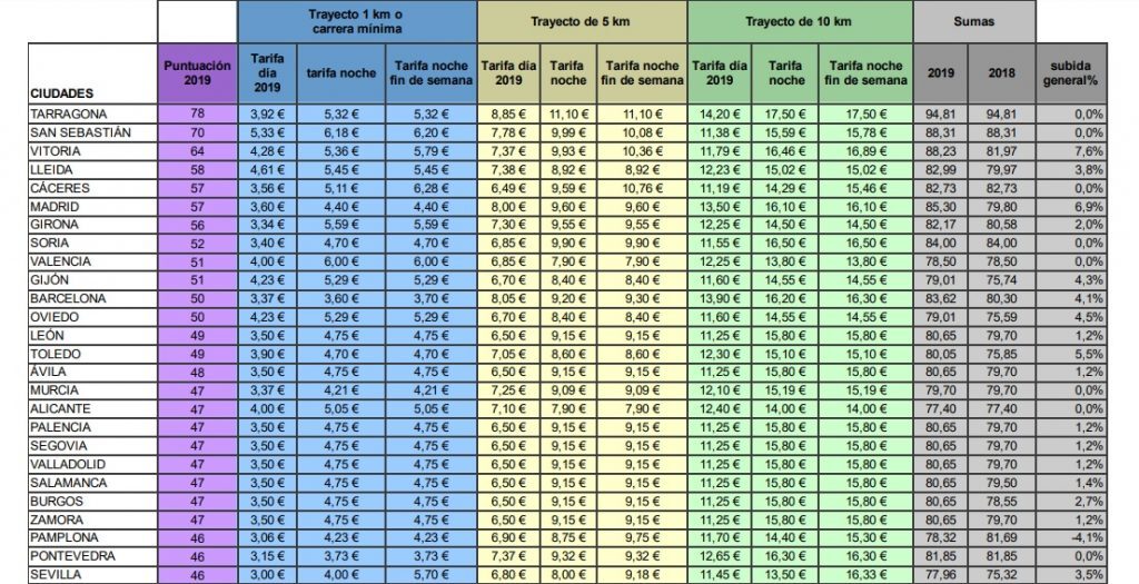 Se encuentra lejos de los precios de Tarragona, San Sebastián y Vitoria, las ciudades españolas con las tarifas más caras en sus respectivas modalidades, mientras que Las Palmas de Gran Canaria y Ceuta se encuentran en el otro extremo.