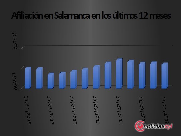 En cuanto al número de afiliados en Salamanca se situó en 121.014, 227 menos que en el mes pasado. En términos interanuales aumentó un 0,93% y con respecto al mes anterior, el descenso es de tan solo 0,19 %.