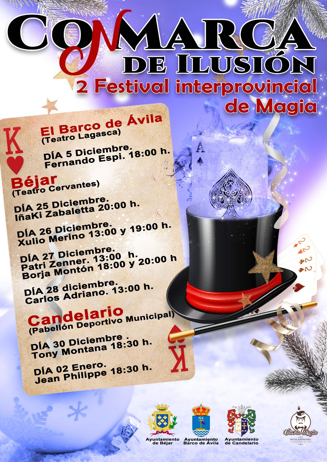 El miércoles 30 de diciembre en Candelario en el Pabellón de deportes se podrá ver a las 18:30 horas a Tony Montana con su espectáculo y para terminar el festival el día 2 de diciembre a las 18:30 horas se podrá disfrutar de la magia de Jean Philippe.
