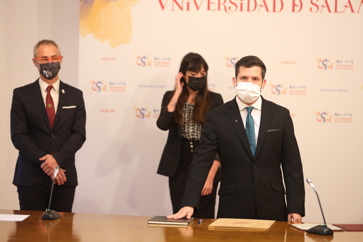 El rector de la Universidad de Salamanca, Ricardo Rivero, presidió el viernes el acto de toma de posesión de Esther Hernández Bejarano, profesora asociada de Sociología, y Daniel González Herrera, profesor asociado de Derecho Internacional Público y Relaciones Internacionales, como nuevos directores de los colegios mayores de Oviedo y San Bartolomé, respectivamente.