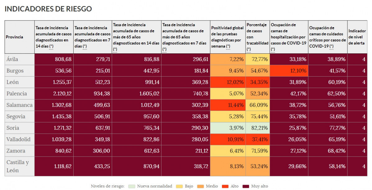 La Junta de Castilla y León aprobó el pasado noviembre el 'semáforo COVID' por niveles y declarado el cuatro en toda la comunidad debido a la alta incidencia del coronavirus y los valores que ofrecen todos los colores del citado semáforo.