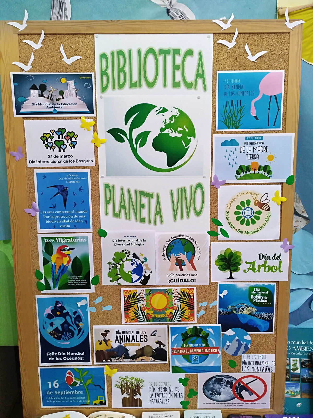 En la primera de ellas se muestran una treintena de títulos en torno a un gran mural que se ha creado a modo de calendario ambiental, con imágenes coloristas que representan temas medioambientales como días mundiales a lo largo del año. Los títulos han sido elegidos con un doble objetivo, por una parte destacar la diversidad y belleza de nuestro planeta y por otra concienciar sobre su difícil situación, planteando los múltiples problemas con los que se enfrenta y las posibles soluciones. Entre los libros que ilustran esta exposición se encuentran ‘Hombre y Biosfera’, ‘Bellezas de la naturaleza’, ‘Atlas mundial del medio ambiente’, ‘Naturaleza salvaje’, ‘Educar en verde’, ‘Deja el plástico’, ‘Cómo leer el agua’ o ‘Guía para caminantes’.