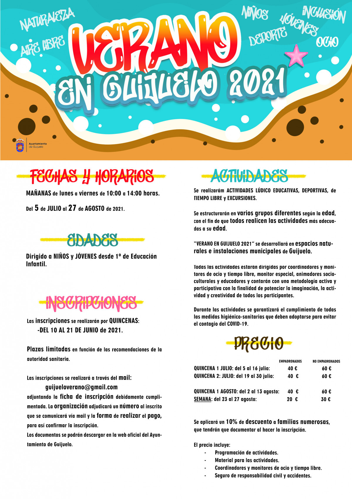 La inscripción tendrá que solicitarse, desde el 10 al 21 de junio, a través de guijueloverano@gmail.com y la reserva de plazas, una vez completada la documentación, será por riguroso orden de inscripción. En este sentido el concejal de Juventud destacó que se va a intentar “dar servicio a todos los que se quieran incorporar, siempre que exista la posibilidad de hacerlo”.