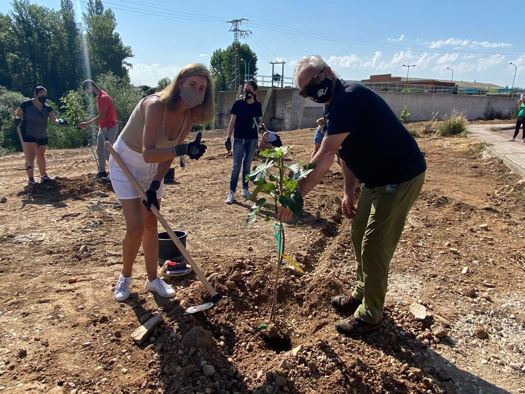 La edil de Medio Ambiente, Marta Labrador, durante la plantación de árboles