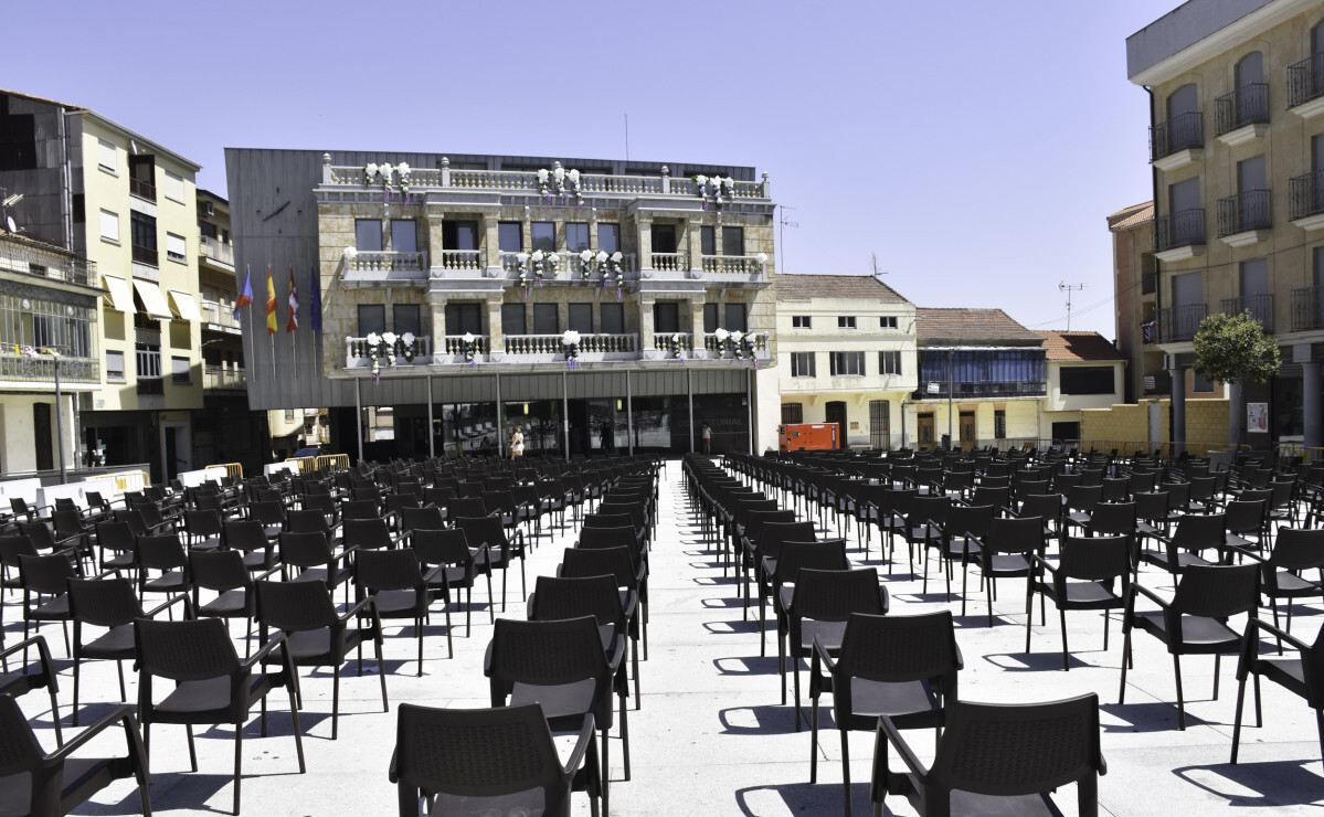 Plaza Mayor de Guijuelo, adaptada a la situación de pandemia durante las fiestas patronales