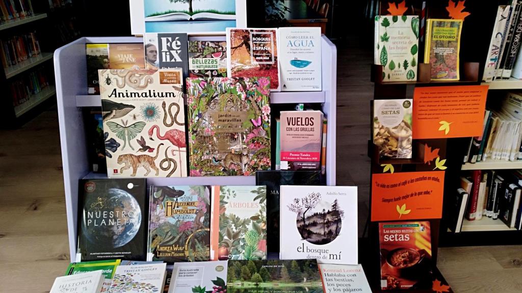Entre las obras de la exposición se encuentra 'Vuelos con las grullas' de Carmen Conde, galardonado con el Premio Tundra de Literatura de Naturaleza, 'Viaje visual y sonoro de los bosques de España' de Carlos de Hita, 'Guía para caminantes' de Tristán Gooley, 'Lobos que reclaman la noche' de Juan Carlos Márquez o 'Hablaba con las bestias, los peces y los pájaros' de Konrad Lorenz. Además, la muestra incluye películas y documentales sobre naturaleza.