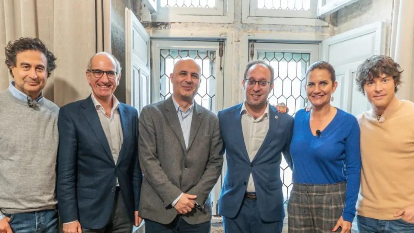 Los presentadores de MasterChef, junto al alcalde de Ciudad Rodrigo, Marcos Iglesias, y el presidente de la Diputación de Salamanca, Javier Iglesias
