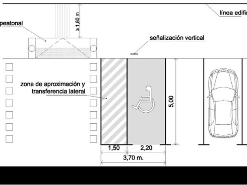 Entre las deficiencias existentes, expone la Concejala,ocurre que en muchas plazas de aparcamiento no existen zonas de aproximación y trasferencia o es deficiente la unión de estas zonas con los itinerarios peatonales accesibles.