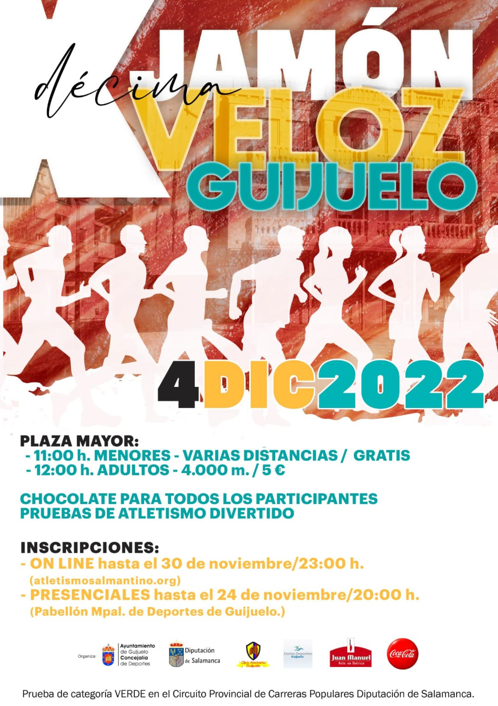 Guijuelo será cita obligada este domingo para todos los amantes de las carreras populares, incluidas dentro del Circuito Provincial de la Diputación de Salamanca. El Ayuntamiento chacinero, junto al Club Deportivo Atletismo de Guijuelo, organiza la X edición de la Jamón Veloz, que ha sido presentada esta mañana por el concejal de Deportes, Carlos Arasa.