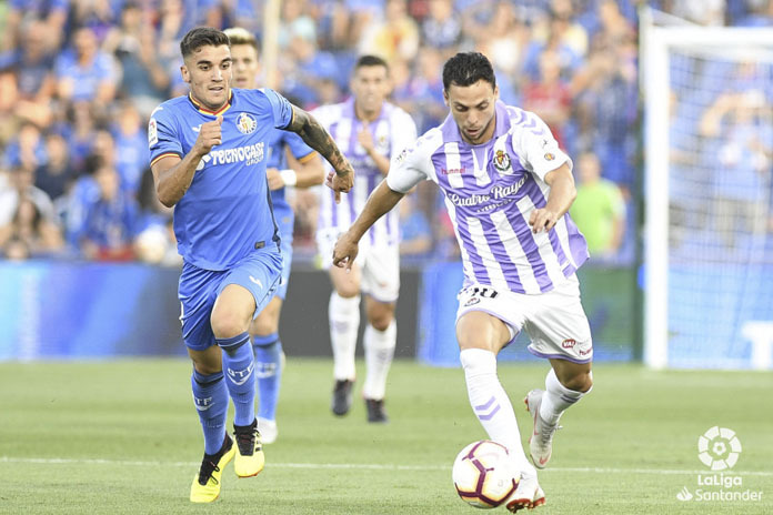La escuadra de Pepe Bordalás entró mejor en el choque. En el minuto 9, una gran jugada de un pelotero de quilates como Iván Alejo (con pasado blanquivioleta) por la izquierda, a punto estuvo de ser rematada por un Jaime Mata que quería convertirse en verdugo adelantándose a Calero, poniendo el corazón en un puño a la parroquia blanquivioleta, en un balón que acabó en los dominios de Masip.