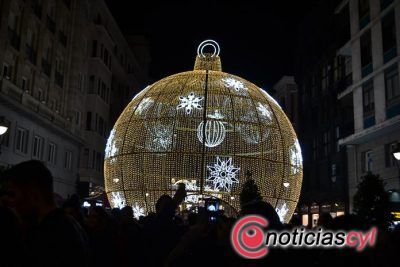 Esta bola, que se ha encendido junto a la decoración de la plaza y paseo de Zorrilla, tiene un total de 47.980 puntos de luz y doce metros de diámetro y funciona como una "entrada" a las plaza.