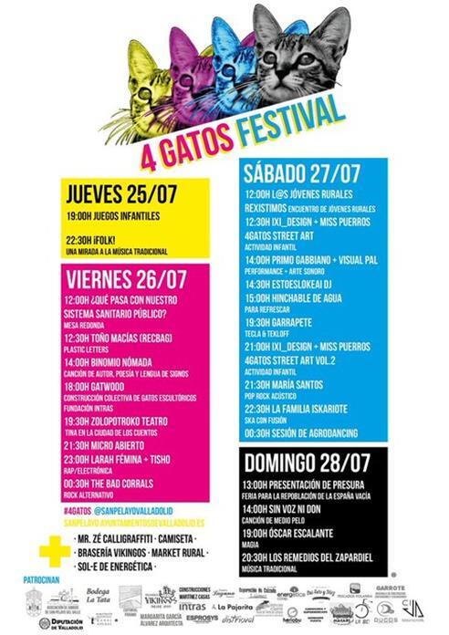 "Hemos dado la vuelta a ese concepto que se utilizaba de manera despectiva hacia San Pelayo diciendo que éramos 'cuatro gatos' para utilizarlo como nombre del Festival y reivindicar que en los pueblos también se pueden hacer actividades culturales", así ha explicado la alcaldesa de San Pelayo, Virginia Hernández, la propuesta con la que nació hace tres años el Festival 4 Gatos, que se desarrolla desde este jueves y hasta el domingo 28.