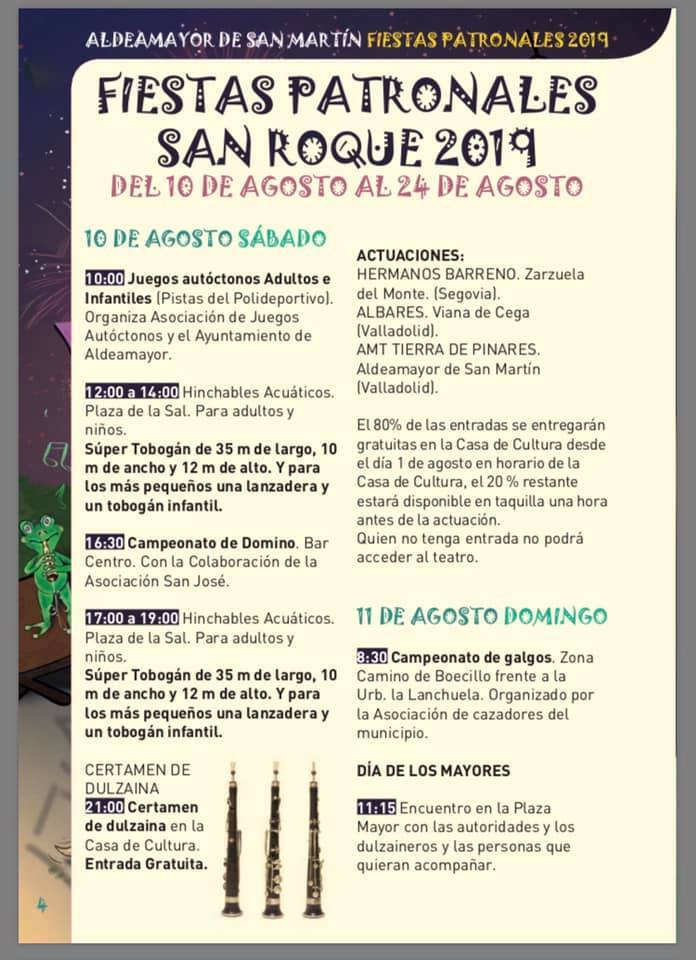Programa completo de las Fiestas de San Roque en Aldeamayor de San Martín