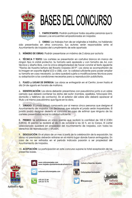 El Ayuntamiento de Mojados ha ampliado el plazo del 8º Concurso de Diseño Portada del Programa de las Fiestas Taurinas de Nuestra Señora del Rosario, en un certamen que tiene un premio de 100 euros.