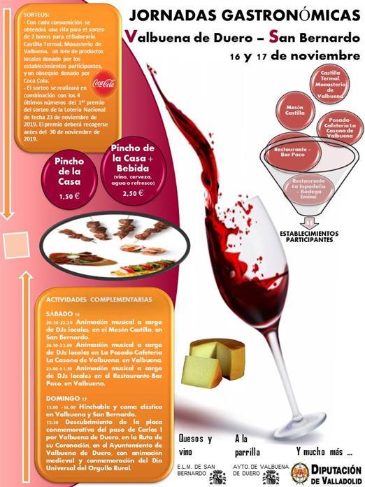 Valbuena de Duero continúa con su constante actividad y el próximo fin de semana, 16 y 17 de noviembre, será turno para una nueva edición de las Jornadas Gastronómicas. Multitud de actividades con la colaboración de los establecimientos de la localidad.
