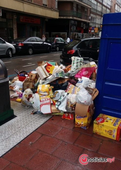 Escena indignante la que han presenciado vecinos y comerciantes en la calle Imperial de Valladolid. Junto a los contenedores alguien ha depositado multitud de basura sobre la acera.