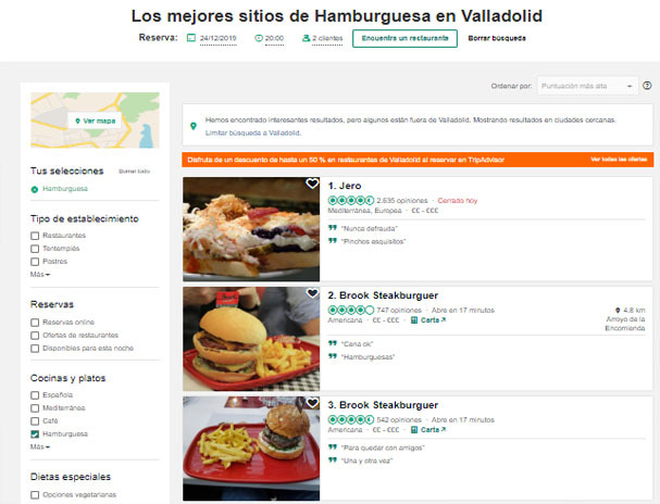 TripAdvisor, la plataforma de viajes más grande del mundo, en la que se pueden consultar millones de opiniones, ha elaborado un ránking con restaurantes o bares en los que se puede disfrutar de las mejores hamburguesas. Es la siguiente:
