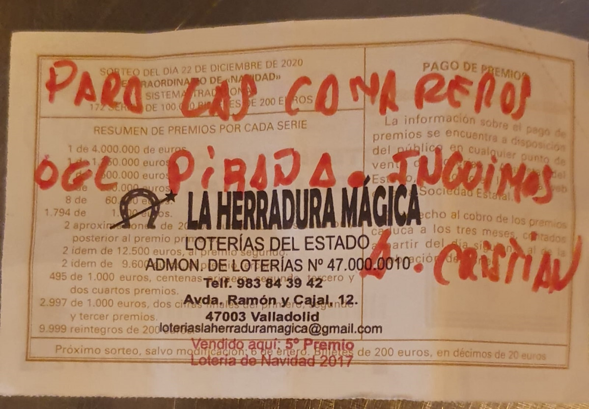 Cristian asegura que la carta fue recibida a eso de las 20 horas del sábado en su local pero que antes un cliente les había regalado, a eso de las 14 del mismo día, un boleto de Lotería en otro precioso gesto de apoyo.