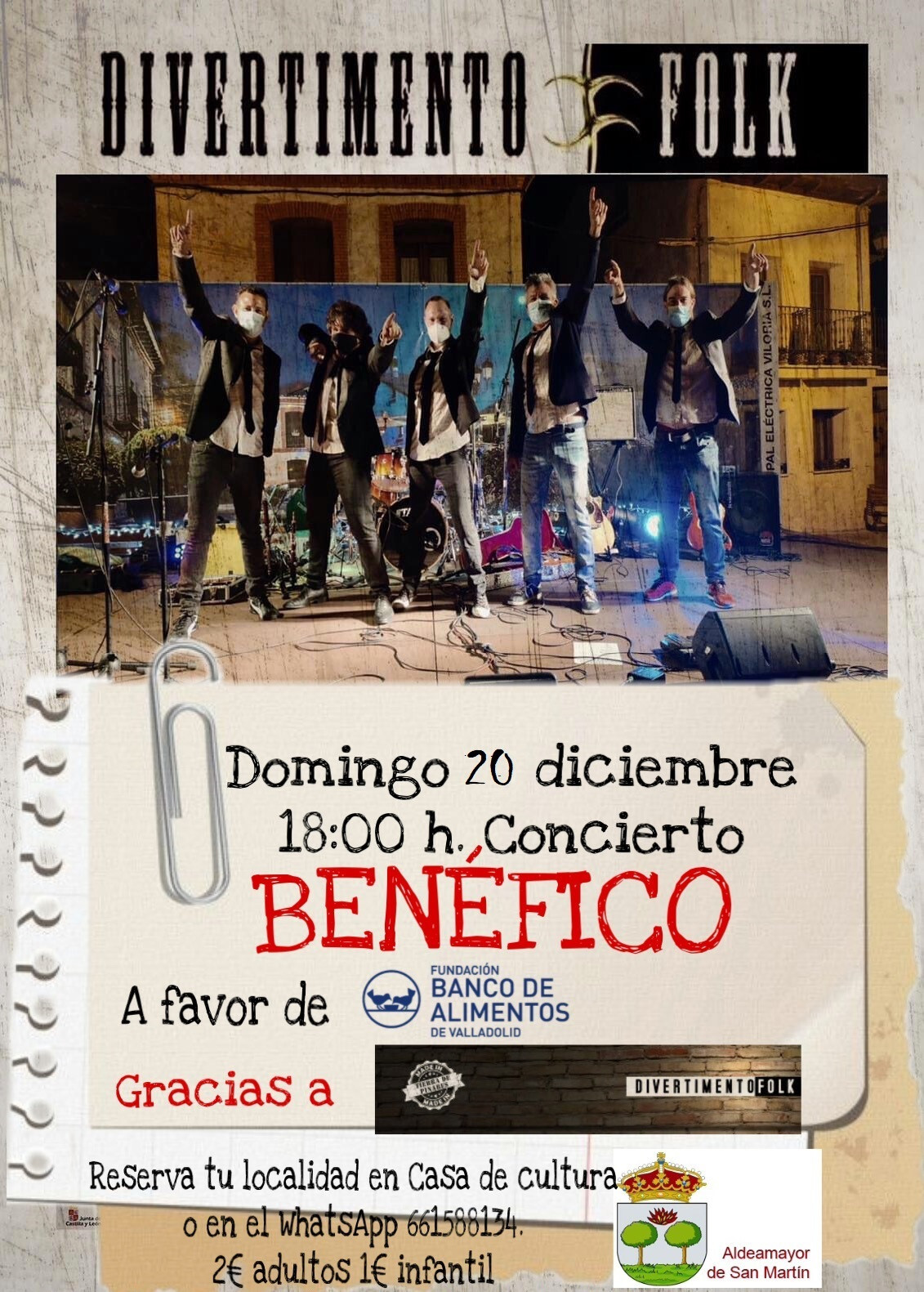 Aldeamayor de San Martín continúa con su apuesta firme por la cultura segura. Para esta navidad ha programado actividades variadas y para todos los públicos. Comenzando el 19 y 20 de diciembre con en concierto benéfico de Divertimento Flok, con una recaudación que irá destinada a la Fundación Banco de Alimentos de Valladolid.